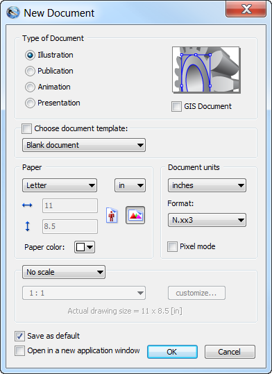 For this tutorial, we’ll create a new illustration using inches as the document units and ¼”=1’ as the scale. We also show the rulers, and make the horizontal and vertical dimensions of objects visible as you draw them.